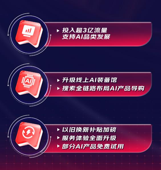 为更好实现 "618 AI 普惠百万用户 " 目标,帮助消费者实现从传统产品到 AI 产品的轻松切换,京东 618 期间联合诸多 3C 数码品牌,推出一系列优惠政策和服务体验的全面升级,通过加磅的以旧换新补贴、部分 AI 产品免费试用权益等,降低用户换新 AI 产品的门槛,让更多人能够轻松拥抱 AI,感受科技发展的红利。