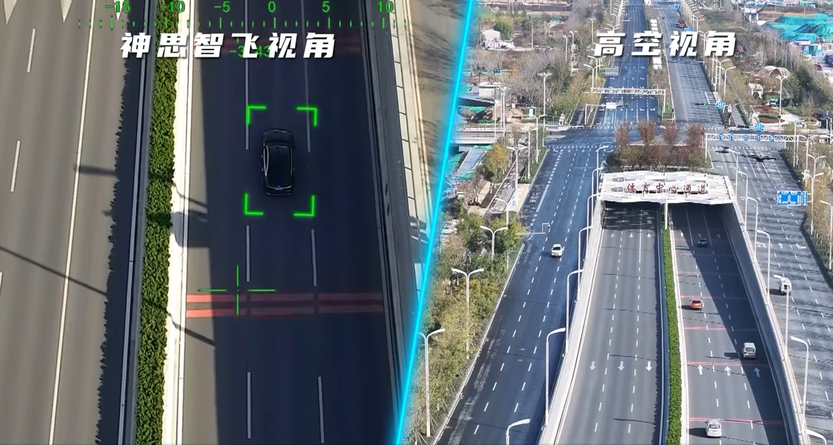 比如在动态目标追踪场景中,神思智飞可以实现精准识别、紧密追踪:当目标车辆进入树木遮挡区域躲避追踪,无人机俯瞰全局,将车辆行踪一览无余;当目标车辆混迹车海,有同向不同速、相向汇聚、转弯变线等情况,无人机均能从容应对,精准预判、丝滑追踪。通过特征、速度、轨迹、方向等四维时空比对,抗干扰锁定,稳定追踪。