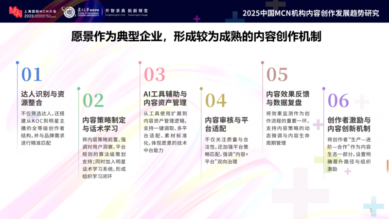 值得一提的是,在大会组委会联合复旦大学发布的报告中,愿景未来还作为行业典型案例被重点介绍。报告指出,愿景通过创作者资源整合、内容策略前置、AI工具辅助等多项举措,构建了成熟的内容创作机制,打造了可持续、高质量的内容生产体系,有效助力品牌价值提升。