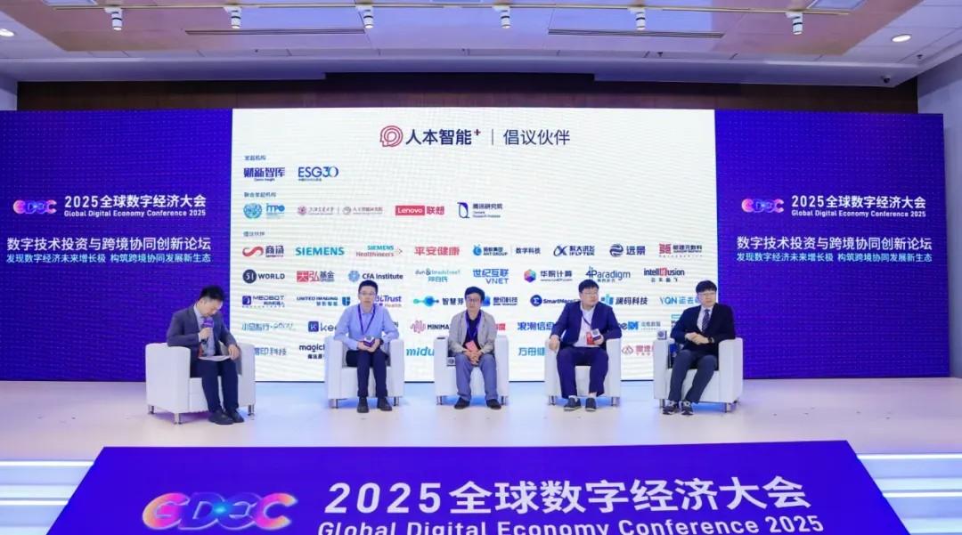 (在数字技术投资与跨境协同创新专题论坛上,“人本智能发展与治理倡议”部分成员单位代表与行业嘉宾进行圆桌对话)