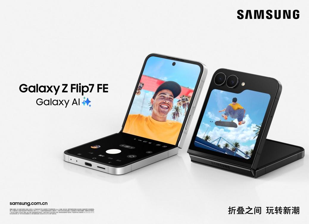 三星电子还同步推出了三星Galaxy Z Flip7 FE,让折叠屏体验惠及更多用户。三星Galaxy Z Flip7 FE折叠时小巧精致,展开后呈现6.7英寸(直角)主屏幕,可带来沉浸式视觉体验。5000万像素立式自由拍摄系统可在立式交互模式下实现高品质自拍与视频录制,让用户解放双手,实现自由创作。外屏新增的即时简报功能,同样为Galaxy Z Flip7 FE优化了布局,可以实时呈现天气、日程、出行提醒等实用信息。三星Galaxy Z Flip7 FE提供炫熠黑与炫羽白两种配色,以极简美学呼应智慧折叠设计。