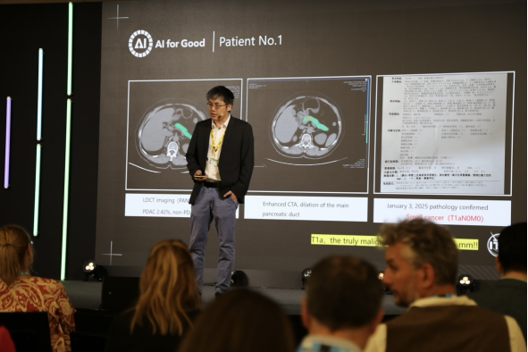 张灵在演讲中提到,一位33岁的中国患者因肺炎在急诊部拍摄胸部平扫CT影像,AI模型准确提示存在胰腺肿瘤。病理分析证实,该患者患有尚不具备转移能力的原位癌,经手术切除可完全治愈。在另一个AI发现的胰腺癌案例中,肿瘤的恶变部分仅有1毫米。“这些案例充分体现了AI筛查的价值,相当一部分癌症患者可以通过早发现、早干预来治愈,我们希望用AI尽快找到这些需要帮助的人群。”