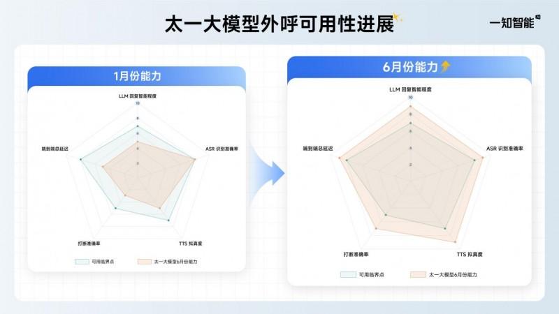 在大模型外呼可用性的严苛测试评估中,“太一语音对话Agent”在短短5个月内实现了显著的技术跨越。尤其在6月份的权威测试中,其核心性能指标取得全面跃升。特别是在端到端总延迟、打断准确率、TTS拟真度、LLM回复智能程度这四大关键维度,“太一语音对话Agent”均展现出行业领先的卓越表现。这一系列突破性进展,标志着其在系统稳定性、语音交互精准度与复杂场景适应性等核心能力上,均已达到顶尖可用性水准,为高要求外呼场景提供了坚实可靠的技术底座与卓越的商业价值保障。