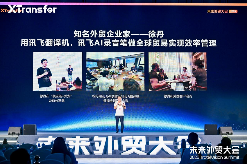除翻译机外,讯飞AI录音笔也成为外贸企业的“效率助手”。知名外贸企业家、链接供应链创始人、阿联酋皇室合伙人徐丹刚开始转型外贸时,被一系列沟通难题困住,如因客户英语口音浓重,沟通中常遗漏关键信息;⾮⺟语谈判时精神紧张,影响对合作细节的判断;企业内部培训缺乏系统,新⼈上⼿慢,团队管理效率低下。